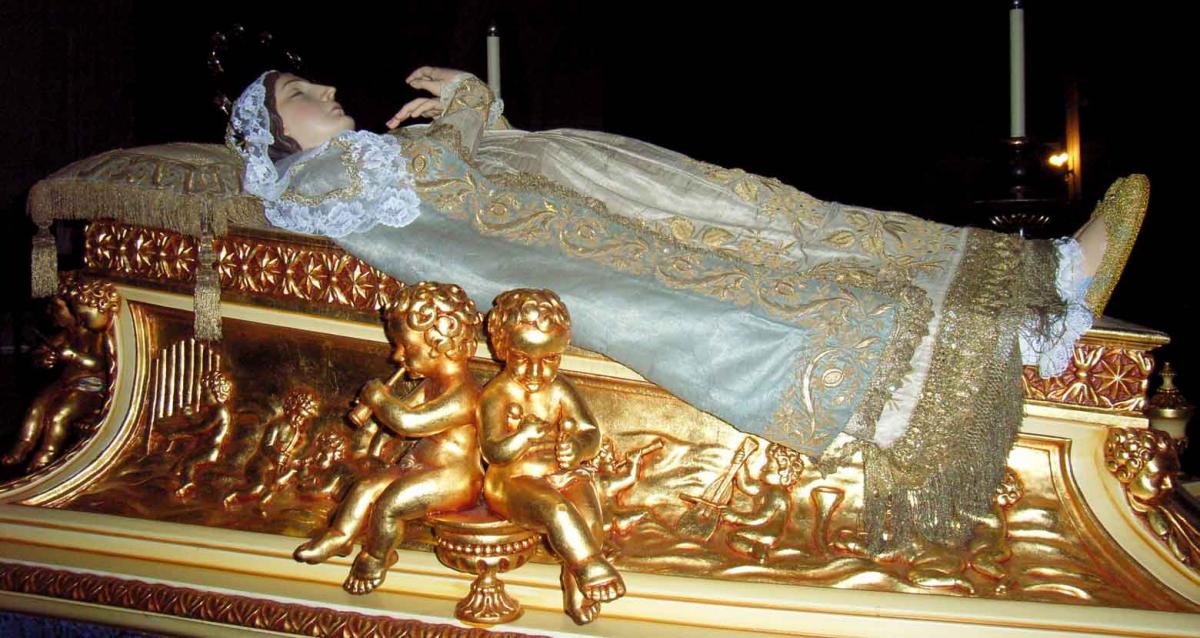 La imagen también se denomina popularmente 'Virgen de la Cama' o 'Virgen de la Litera'.