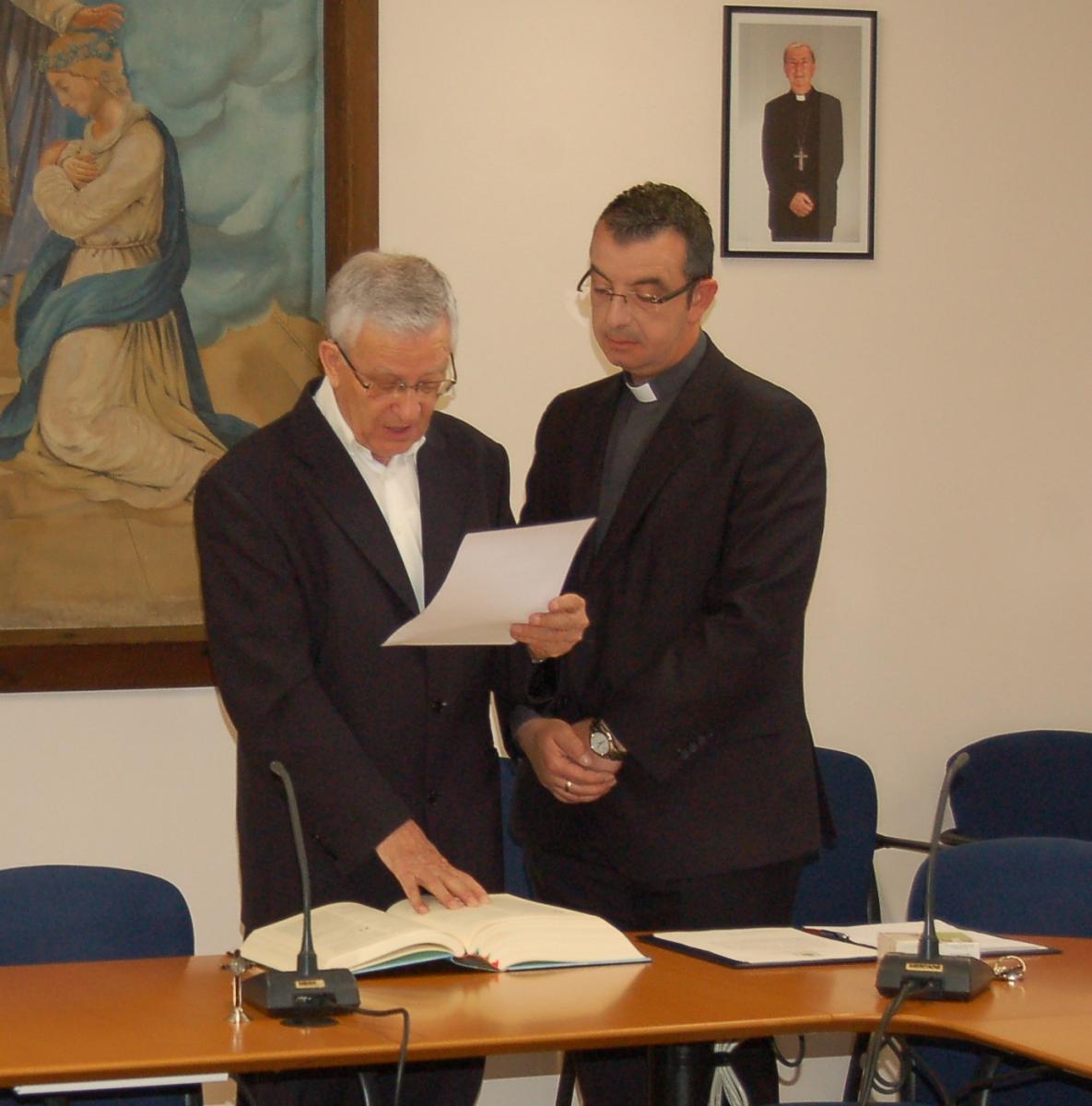 El Padre Jové ha tomado posesión en un sencillo acto en el Obispado de Lleida presidido por el Obispo Salvador y donde también ha estado presente el anterior Vicario General, el Padre Ramón Prat. Durante el mismo el Canciller y Secretario General del Obispado, Victor M. Espinosa ha hecho lectura del decreto de nombramiento y después el nuevo Vicario General ha leído la Profesión de Fe.