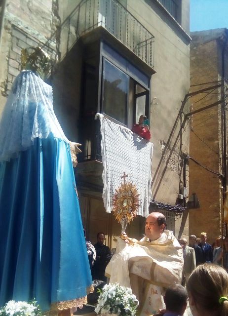 El otro momento importante de la Semana Santa de La Granadella fue la Procesión del Encuentro, única en nuestra diócesis, que tuvo lugar tras la celebración de la Misa de Resurrección oficiada en la parroquia de la Virgen de gracia, cuando la imagen de la Virgen de la Soledad vestida para la ocasión de blanco y manto azul, se encontró con su Hijo Resucitado en la custodia, llevada por el rector Mn. Jaume Melcior bajo palio. A continuación, la imagen de la Virgen dejó paso a su Hijo en la custodia y se colocó detrás de Él, para continuar la procesión dando la vuelta a la plaza para volver al interior del templo. Mn. Melcior, con palabras agradecidas, dio las gracias al pueblo para poder vivir la Pascua con la vivencia externa de devoción popular que representa la antigua y arraigada Procesión del Encuentro.