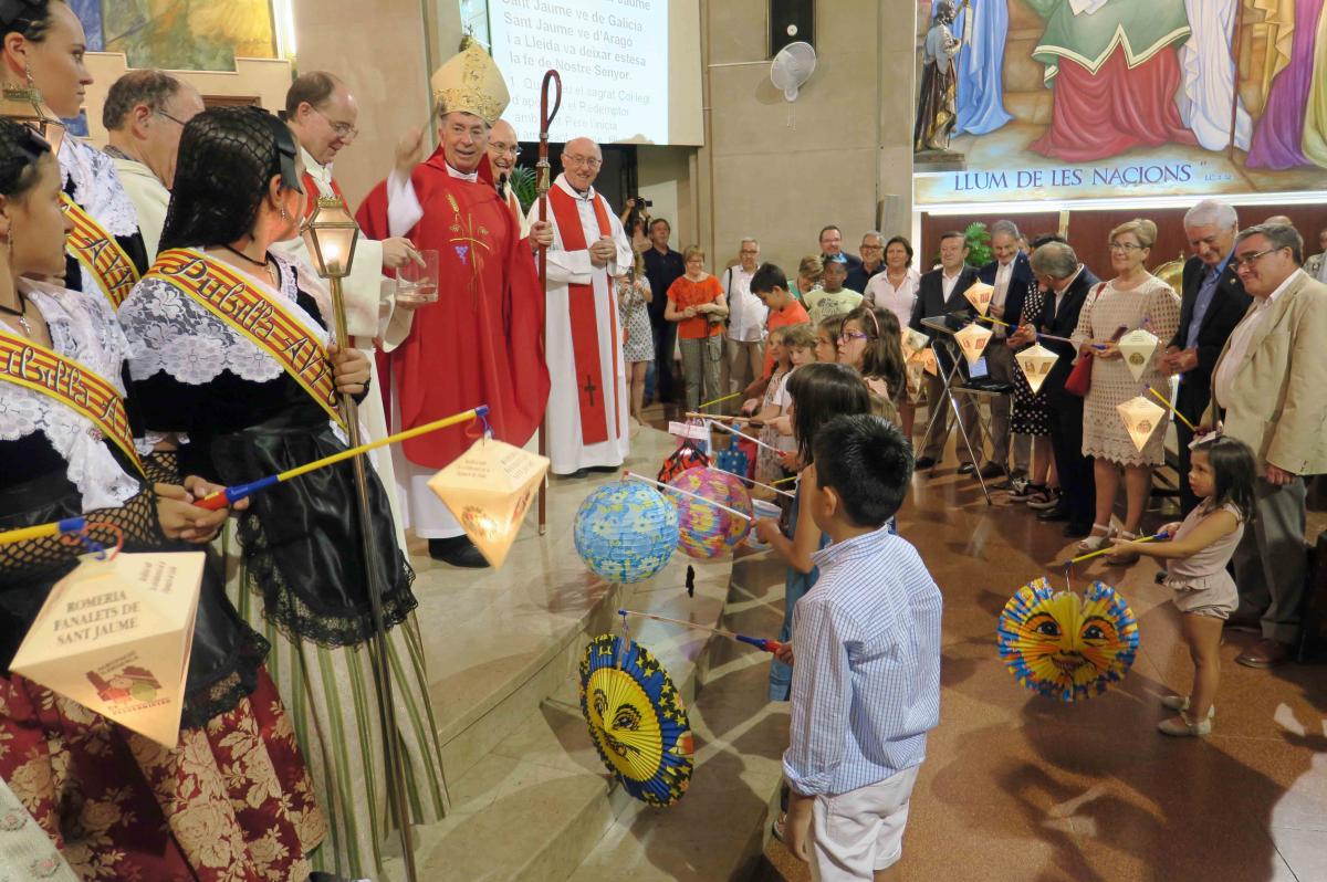 La Misa de Santiago de los Fanalets, ha estado presidida por primera vez por el obispo de Lleida Salvador Giménez Valls y concelebrada por Mn. Vicente Alfonso, consiliario de la entidad. La celebración cierra de hecho los actos en torno a esta fiesta tradicional, popular y religiosa de la ciudad de Lleida y es la única Misa que se celebra en el año en esta popular capilla, que es también al mismo tiempo un punto relevante del Camino de Santiago en casa.