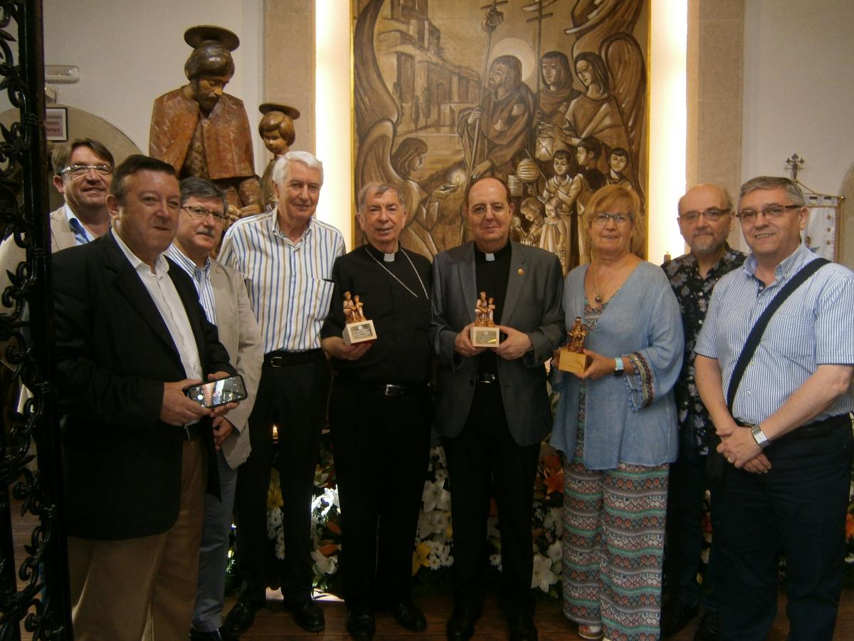 Al finalizar la celebración, el obispo Salvador, así como el consiliario de los belenistas Mn. Vicente y la concejala de Cultura Montse Parra, han recibido de manos del presidente de la Agrupación Ilerdenca de Belenistas Ángel León, una reproducción de la imagen de Santiago de los Fanalets.