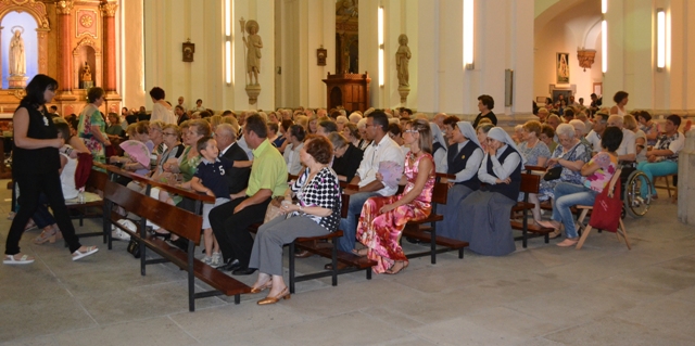 Las últimas en llevar la santa hasta la parroquia fueron de nuevo cuatro hermanitas, entre ellas la Superior, Sor Montserrat Brescó, que entró en la iglesia con aplausos de los fieles que ya la esperaban en el interior. El templo se llenó y el obispo Salvador también presidió la eucaristía afirmando en la homilía que "hoy recordamos a una mujer que dio su vida por los demás" y añadió que "quiero agradecer el ejemplo que dan con su carisma y su estimación todas las comunidades de religiosas” y afirmó también que “pedimos a la Virgen que nos ayude a estar siempre más cerca del ejemplo de Santa Teresa ".