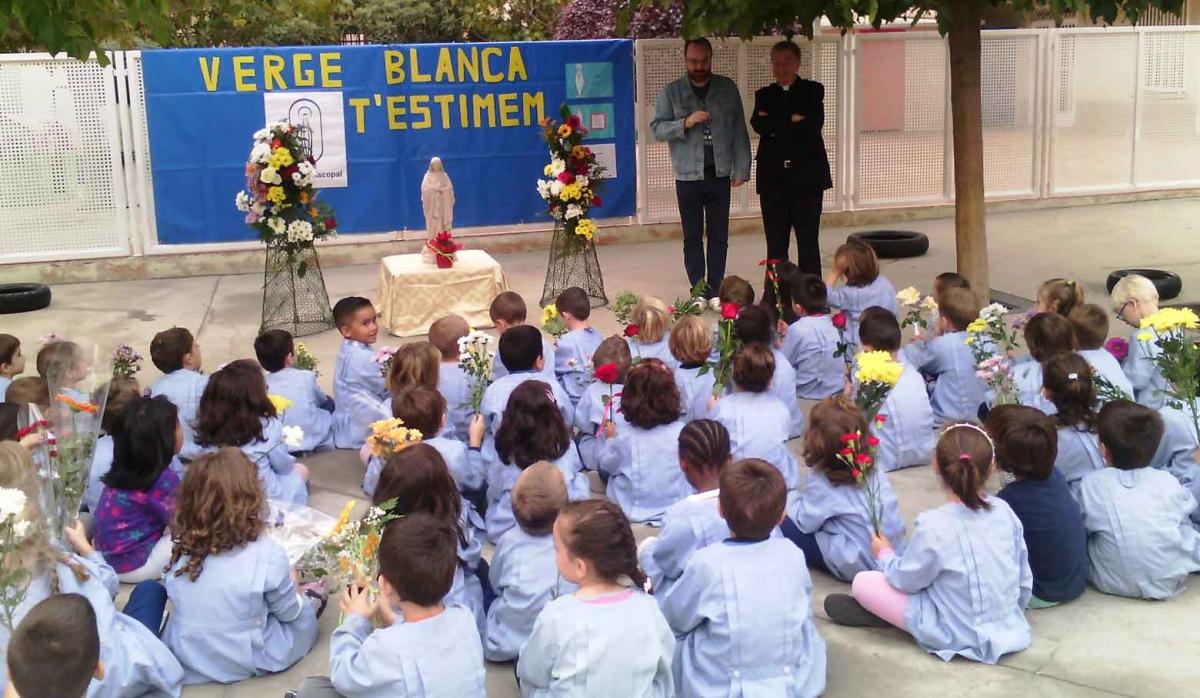 El bisbe Salvador ens ha acompanyat en l'ofrena de flors dels alumnes més petits d'infantil, ha compartit un cafè a la sala de professors, ha visitat les activitats que els alumnes més grans de batxillerat han preparat per a nens i nenes de primària,...