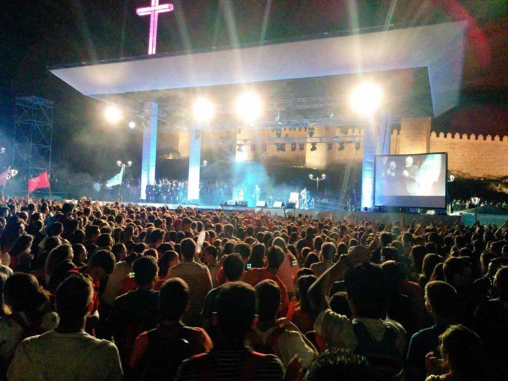 Les activitats van continuar dijous i divendres (podeu veure els vídeos resum), entre les catequesis, la fira de les vocacions i diferents actes, com la taula rodona de Santi Rodríguez i el pare Damián, a la qual van assistir més de 700 joves. Tot plegat per preparar el concert de la nit del divendres, en el qual el hagstag oficial de la trobada va arribar a ser trending tòpic mundial.