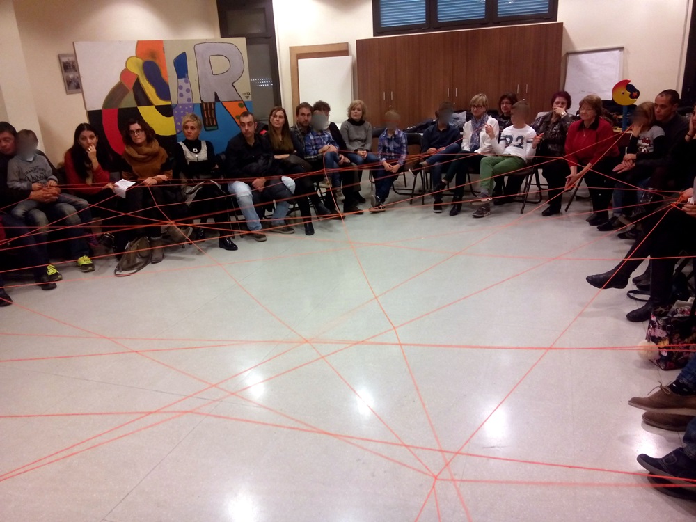 A continuació, els assistents es van anar passant un cabdell de llana, al mateix temps que cadascú deia que aportaria pel Nadal, entre els que estan a prop, per fer un Nadal complet. D'aquesta manera es va crear una teranyina teixida dels talents que cadascú pot aportar, com un regal que ens vam fer entre tots.