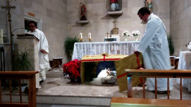 En arribar, la comunitat es va trobar amb un gran regal que estava sota l'altar i es preguntaven què era el que hi podia haver. Llavors el sacerdot, Mn. Héctor Fernández els va respondre que era un regal, la qual cosa va anar creant una expectativa.